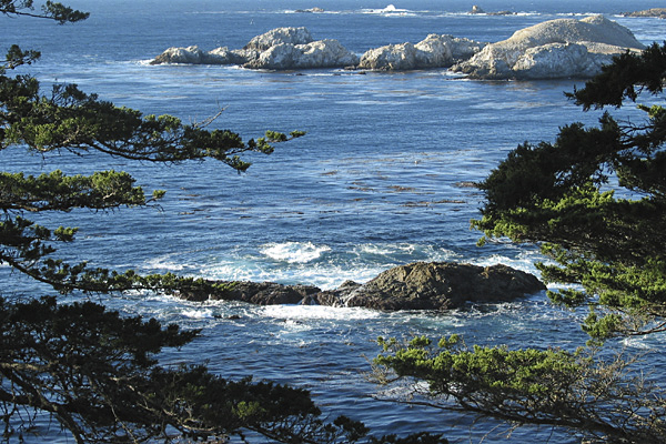 When I got up the next morning for my 6:30 a.m. walk and discovered 3 bakeries (with chocolate croissants!) open at that time, I quickly suggested to Gary that maybe we should stay longer than the planned 3-4 days! After seeing how delightful & "walk-able" Monterey and the surrounding towns of Pacific Grove and Carmel are, we've adjusted our plans.one of the joys of this life! We also met Carol Anne & Robert, friends of my Uncle Larry, who have a boat here & live in the area. They graciously hosted us for lunch at th e Monterey Peninsula Yacht Club and have been very helpful with information about the town and surrounding area. We've already spent a night at the Centrella Inn in Pacific Grove (enjoying the bathtub!) and visited the Monterey Bay Aquarium, becoming members so we can visit it often during our stay. The aquarium is excellent and is doing much to help revitalize the population of sea otters in the Monterey National Marine Sanctuary. Last weekend found us driving down the coast toward Big Sur; it was interesting to look out to ocean and realize that we had seen the same area from our boat! Our third week in Monterey brought visitors from Michigan as Norma & George along with their daughter-in-law and grandson drove down from the Bay area. It's always fun to see familiar faces and meet new folks.