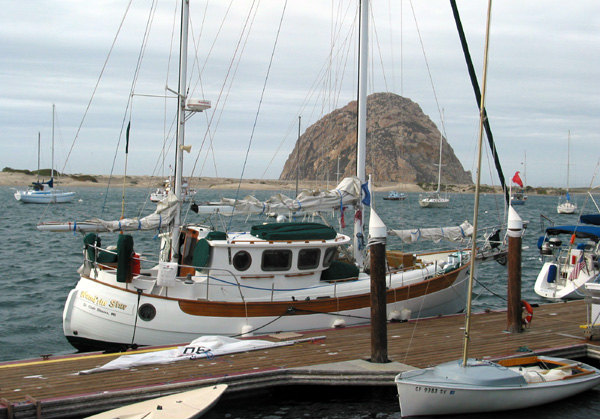 We left Ventura on Halloween in calm seas with 5 knot winds - a beautiful day for the four hour trip to Santa Barbara, our first stop. Before leaving the harbor, we topped off the fuel tanks and were pleasantly surprised to find that we had only used 68 gallons of diesel since leaving Dana Point on June 7 th . As we headed west, the winds strengthened and we put two reefs in the mainsail as the winds had increased to 25-30 knots! After arriving in Santa Barbara and determining where our slip was, it was a real challenge to put the boat in the slip with the wind blowing that hard! We were fortunate that some folks on the docks helped with the dock lines and with Gary's expert docking skills, we were safely tied up for the evening. The next day the weather was not good for heading around Pt. Conception so we enjoyed a day in Santa Barbara. Election Day brought us excellent conditions and we headed out of the harbor at 8:30 a.m. with beautiful blue skies and flat seas! Our tentative plan was to go as far as Cojo Anchorage, just east of Pt. Conception and about four hours from Santa Barbara to reassess the conditions before rounding the point. We were pleased that conditions matched the forecas t and we proceeded around Pt. Conception & Pt. Arguello making the run for Morro Bay..a total distance of 103 miles and 16.5 hours. It was so calm moving north that we could see reflections in the water as we passed the Pt. Conception Lighthouse; we felt very fortunate! An observation we made while passing numerous Resource Recovery Structures (aka - offshore drilling platforms) was the amount of oil we saw on the ocean's surface. The more time we spend on the water, the more fragile and endangered we realize our oceans are; they seem vast, but humankind is definitely having a negative impact on them through very conscious decisions. We continued north to Morro Bay and entered the bay at 11:30 p.m. This was the first time we had entered a harbor and anchored in the dark - it was a little disconcerting. The channel markers were not lit, so Dorothy stood on the bow with a flashlight to find and illuminate the markers as we made our way to the anchor area. We were grateful to have had such a good passage, to be safely anchored and to go to bed! The next morning we moved to the dock at the Morro Bay Yacht Club as we expected the weather to worsen by mid-day. Shortly after tying up at the dock the winds increased to 25 knots and there were white caps on the bay! It was the worst weather we had seen since leaving Ventura and we felt very fortunate to be securely tied. We watched with amazement as an instructor and student soon left the dock in a sailing dinghy, given the current weather. After watching them struggle to control the small boat for several minutes, the boat flipped, dumping both occupants into the cold water. The Harbor Patrol was quickly notified of the situation and got the student out of the water while the instructor tried to right the boat. Eventually the Harbor Patrol also got the instructor aboard and towed the dinghy back to shore. We have been very impressed with all our interactions with the Harbor Patrols in various locations; they provide valuable services to boaters and the folks are always professional and courteous. The Morro Bay Yacht Club warmly welcomes cruisers and we were invited to their Friday Night Happy Hour. What a treat - wonderful food, good conversation and cheap drinks! We invited a group of folks back to see the boat as they had been admiring her; it was a great ending to our visit in Morro Bay.